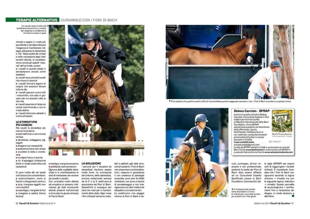 Debora è stata la prima BFRAP in Italia nord occidentale, (Bach Foundation Registered Animal Practitioner) consulente riconosciuta dal Bach Centre per l’applicazione dei Fiori di Bach agli animali.
